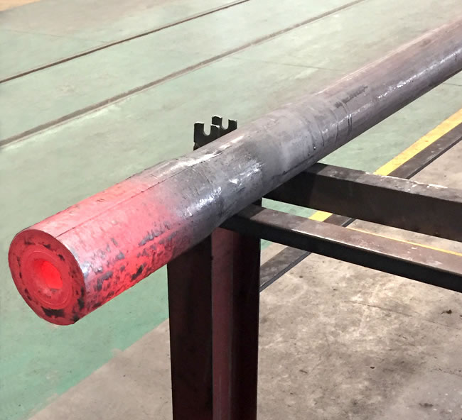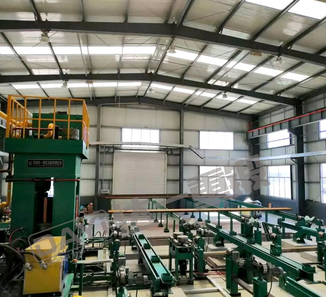管端加厚機(jī)是我公司針對石油鉆桿、油管的加厚工藝研發(fā)的新型特種設(shè)備,管端加厚的目的主要是為了保證鋼管在管端車加工截面處的強(qiáng)度,鋼管加厚類型有外加厚、內(nèi)加厚、內(nèi)外加厚三種工藝。加厚機(jī)組有加厚機(jī)、輔機(jī)及加熱系統(tǒng)等組成,即對鋼管進(jìn)行橫向運輸、加熱及端部加厚。